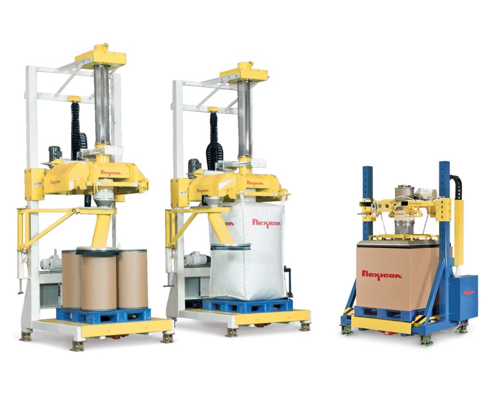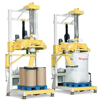 Bulk bag fillers can be configured to also fill drums, boxes, and containers. Other design enhancements for these applications include adjustable fill heads, built-in dust control, and automated indexing for multiple containers on a single pallet.